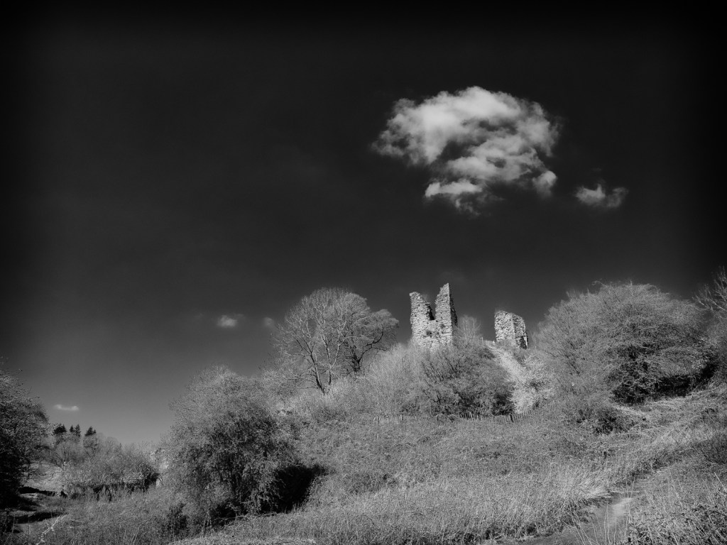 English Heritage’s Wigmore Castle, Herefordshire. Only ruins remain, following the destruction of the castle in the English Civil war to prevent it becoming a stronghold. Remaining walls are surrounded and half covered by dismantled masonry and accumulated earth giving a hint of what the castle used to look like.