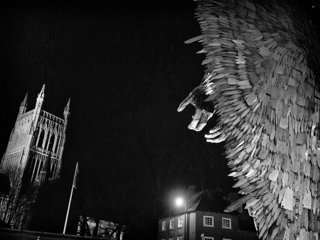 The Knife Angel, Cathedral Square, Worcester. For more info visit: https://www.worcester.gov.uk/news/knife-angel-arrives-in-worcester-with-message-of-hope